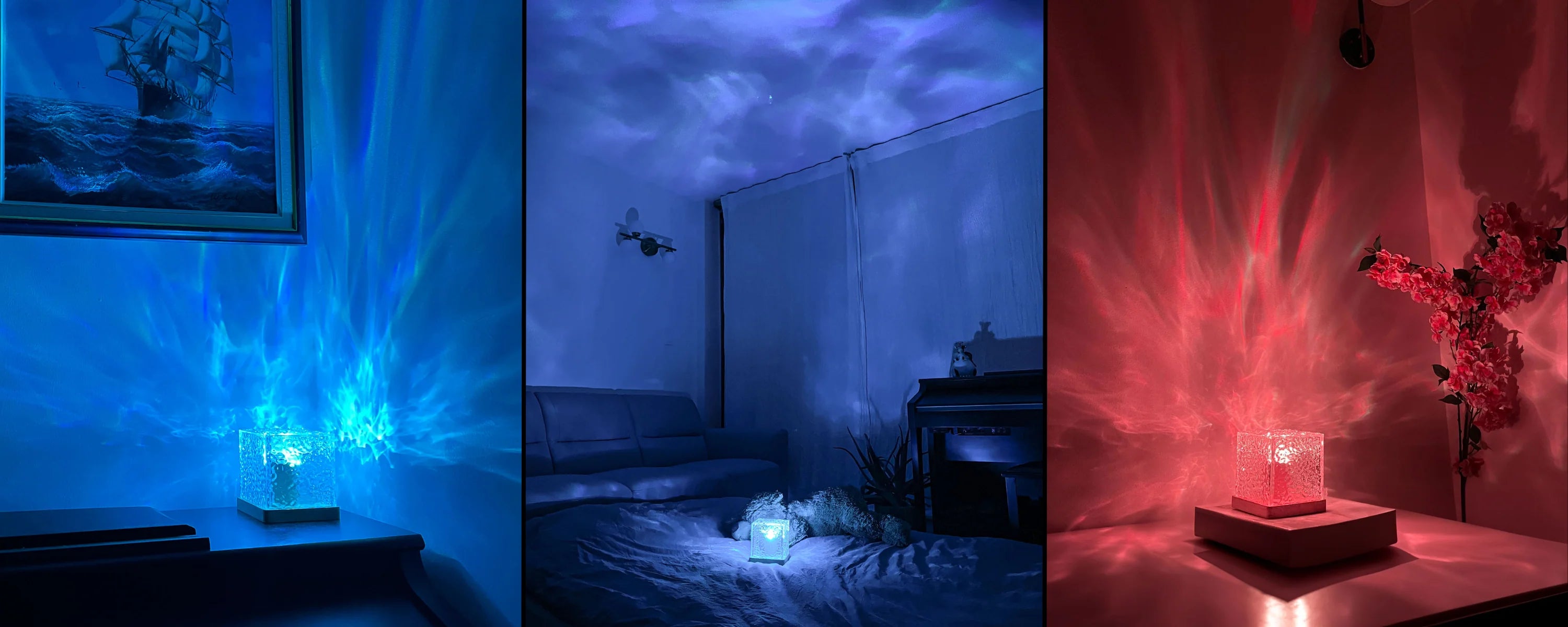 Gentle color waves resembling the aurora borealis effectively reduce anxiety and stress. This soothing ambiance encourages creativity and emotional well-being, providing a serene space for relaxation and rejuvenation.